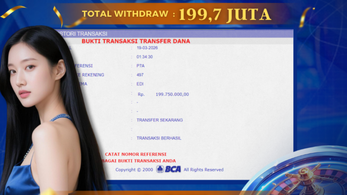 DEWATOGEL mengucapkan selamat kepada user id : GIY*** yang telah berhasil mendapatkan jackpot pada permainan LIVE CASINO DI RED WHITE. Kemenangan sebesar Rp 199.700.000,-. telah dibayarkan LUNAS oleh pihak dewatogel kepada pemilik user id setelah yang bersangkutan mengisi formulir withdraw. Proses pencairan dana berlangsung sangat cepat hanya dalam waktu 5-10 menit sudah berada dalam rekening pemilik user id. Bukti transfer yang dapat anda lihat adalah bukti SAH / VALID yang langsung di dapatkan melalui bukti transaksi dari Bank yang digunakan untuk pengiriman dana pada rekening pemilik user id. Terima kasih kami sampaikan kepada para pengguna setia DEWATOGEL yang telah menggunakan situs kami, sebagai Bandar Terpercaya yang pastinya membayar semua kemenangan member hingga lunas. Apakah DEWATOGEL PENIPU ? Reputasi “DEWATOGEL TERPERCAYA” sudah sangat melekat. puluhan hingga ratusan ribu pengguna setia DEWATOGEL tetap menggunakan situs terbesar dan terbaik di Indonesia ini. Hapus rasa was-was dan khawatir anda, kemenangan anda berapapun PASTI dibayarkan hingga lunas.