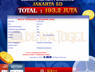 DEWATOGEL JACKPOT TOGEL DI JAKARTA 5D Rp 193.200.000,- LUNAS